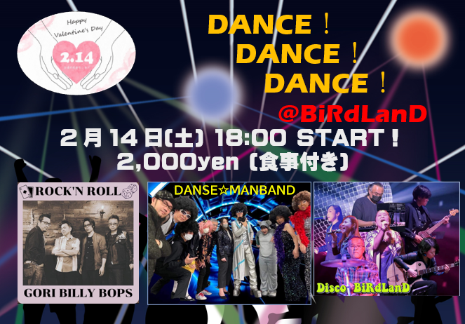 - 2/14(土) DANSE!DANSE!DANSE! 18:00スタート 2,000円(食事付き)