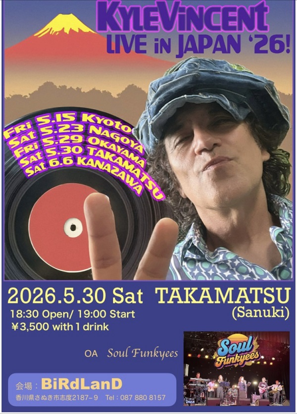 - 5/30(土) Kyle Vincent LIVE in JAPAN'26 18:30オープン/19:00スタート 3,500円(ワンドリンク付き)