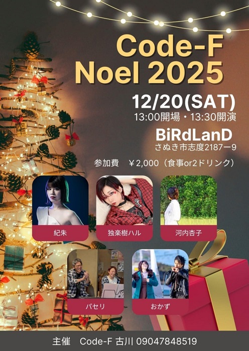 - 12/20(土) Code-F Noel 2025 13:00オープン/13:30スタート 2,000円(食事付き)
