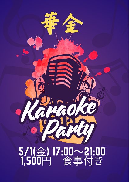 - 4/24(金) 華金カラオケ 17:00~21:00 1,500円(カツカレー付き)