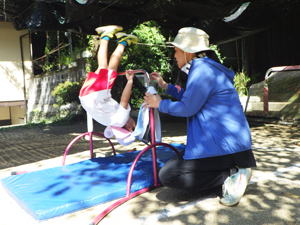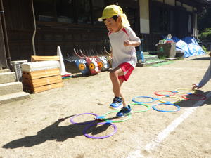 9月30日、10月1日 すみれ組 すみれさんも個人種目の練習風景。 これまで個々に練習して来た跳び箱・鉄棒に加え、 サッカー教室でやって来た『空中ボールキャッチ』 (最近はあまり見られないのですが、 この子達がももばらの頃は結構やっていた ボールに慣れる為のミッション)、 そして最後は『ランドセルを担いで駆け込みゴール』と そんなメニューを用意してくれた美香先生。 こうして見ていると この子達の『入園からの園生活の集大成』 と言った感じでなんか物語を感じます。 特に最後が『駆け込み一年生』で この子達の半年後を暗示しているかのよう。 でもでもきっとそれで良いのです。 すんなり小学校に上がって そこで苦労をするよりも、 『何かが足りない自分』に今の時分から向き合って それを乗り越えてゆく体験と学びこそ 小学校に行ってからのこの子達を 支えてくれるものとなるはずだから。 去年の最初は鉄棒の前で 小刻みにぴょんぴょん跳ぶだけで、 「なんとかして」と先生の顔を見上げていたこの子達。 自分の力で鉄棒に身体を引き寄せて 跳び上がれるようになりました。 『ボールキャッチ』もなかなか真上に上がらぬボール、 そして落ちて来たのをキャッチ出来なかった子ども達。 それを『ボールを選択出来る』と言うルールを取り入れたなら 『これならできる』と自信を持って取り組み出したこの子達。 昔なら「できん!できん!」 でわらわらしているだけだったのが、 『こうしたら出来る』を見つけることで 自分自身に前向きに向き合えるようになって来たみたい。 それは園生活・そして学校生活においても同じこと。 うまくいかない自分、 そして何が不安か・問題か それが分からずスランプになることだってきっとある。 いままで上手く行き過ぎて来たんだから。 上手にかわして『失敗』をせずに来ちゃったんだから。 そんな自分に対して後ろばかりを向いていたならば 前には暗闇が広がっているように感じるばかり。 夕涼み保育で真っ暗の中を突き進み みんなでゴールまで辿り着けたこの子達。 きっときっと今回も みんなで励まし合って・助け合ってゆけたなら、 素晴らしいゴールに辿り着くことが出来るはず。 そんな想いで見つめていた すみれ個人競技の練習風景でありました。 がんばれ!すみれ組! |