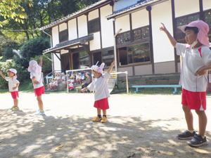 10月1日 たんぽぽ組 たんぽぽさんはダンスの練習風景です。 入園からまだひと月のおふたりさん。 段々と自分を出して 笑顔やおしゃべりも見せてくれるようになりました。 でもやっぱり『全体』の中に入ると緊張するのか、 練習の中では控え目モード。 そんなたんぽぽさんを優しく あちこちあれこれお世話してくれる すみれさん達でありました。 それでもたんぽぽのおふたりさん。 決して『イヤイヤモード』でないところが偉いところ。 リードしてくれるすみれさんにしっかりついてゆきまして、 お勉強をしてくれています。 この子達が物静かな時、 これって実は『インプットモード』。 先生の話や友達の姿から 『今、自分に求められていること』を じっと見聞きし受け止めているところなのです。 『分からないままやっちゃうより、ちゃんと出来るようになりたい』 と言う想いの顕れなんだと 嬉しく受け止めている僕なのです。 だから段々と分かるようになって来たならば、 身体もちょっとずつ動き始めたこの子達。 ノリの良い「ばにーちゃーん!(本当は『バニージャンプ』)」 と歌うこの曲に合わせて、 心と体が少しずつ動き始めた今週のこの子達。 そんな『不言実行』なところ、 園生活の中でもあちらこちらで垣間見えて来ました。 自分達が分かるようになって来た『おかえりの準備』なんかも、 自分はさっさとやり終えた後で ばらさん達に「タオル入れて」なんて声掛けをしていました。 そんな『しっかりさんぶり』に思わず笑ってしまいます。 そうそう、お互いに良い励み&心の糧を 嬉しく醸し出しているこの子達。 そうやって徐々に徐々にちょっとずつ 自分を顕して行ってくれたらいい。 そんな姿を嬉しく見つめている僕なのです。 |