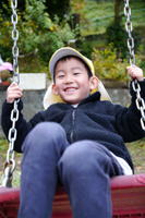 | すみれ組のとうま君、 ブランコに乗ってのんびりまったりこんな顔。 普段はこんな『ほよよんとうま君』なのですが がんばる時にはがんばれる 男の子になりました。 実は真面目なとうま君。 今でも逆上がりの練習を日々続け、 鉄棒にかじりついています。 |