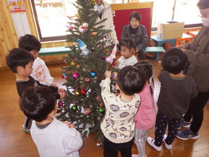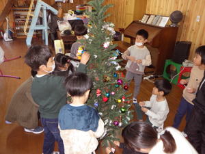 | 【今週のスナップ 11月27日】 今日は合同礼拝でアドベント第2週の礼拝を みんなでホールで守りました。 そしてその後、クリスマスのお楽しみ 『クリスマスツリーの飾り付け』をみんなでいたしました。 クリスマス礼拝・祝会に向けて 歌や合奏やページェントの練習を始めた子ども達。 でもそれだけじゃクリスマスはやって来ません。 『イエス様のお誕生をみんなで喜び祝う』 そんな心の準備がなにより大切。 それにはこんなツリーやオブジェを飾りつけ 嬉しい心を掘り起こしてゆく準備もこれまた大事。 みんなで手分けをいたしまして 一杯一杯飾りが付けられたクリスマスツリー。 最後にLEDの点灯式をみんなで見つめ、 「きれい!」と大喜びしておりました。 今週末で半分の道のりを歩んで来た今年のアドベント週間。 子ども達、色々な事を感じながら、 色々な事を学びながら、 クリスマスへの道のりを一歩一歩あゆんでいます。 どうぞご家庭におかれましても クリスマスへの日々を一日一日 楽しみながら・共に喜び合いながら、 歩んで行ってもらえたなら嬉しく思います。 そして12月14日のクリスマス礼拝・祝会では みんなみんなで心から イエス様のお誕生日をご一緒にお祝いいたしましょう。 |