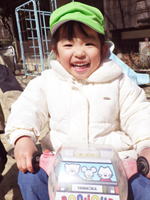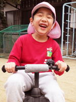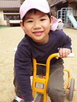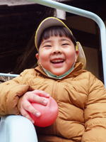 すみれ組のゆうまくん、 すべり台から滑って来まして こんな笑顔で「はい、チーズ!」。 力の抜けたリラックス顔も 極みの域に入って来た感じ。 こんな顔が出来るってとても大事。 がんばり過ぎずにがんばれる、 そんなゆうま君がとっても素敵です。 |