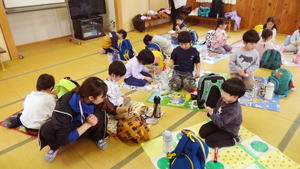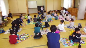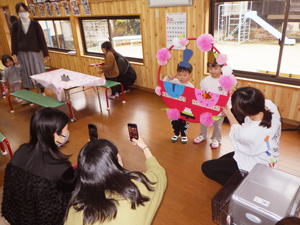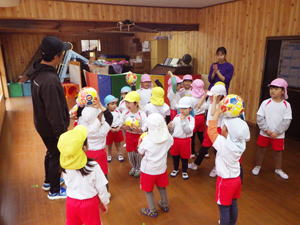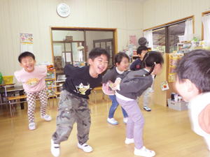 ![]() ![]() ![]() ![]() ![]() 梶谷岡の集会所では楽しいゲーム大会で楽しんだ子ども達。 「にゃんちゅう!にゃんちゅう!」で盛り上がった『泥棒ネコとねずみ警部』、 たんぽぽちゃんの優勝で幕を閉じた『ジャンケン列車』などなど、 大盛り上がりで楽しませてもらいました。 |