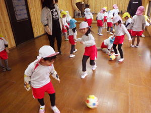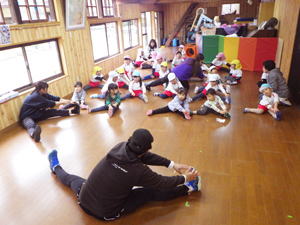 | 3月3日 すみれ・もも・ばら・たんぽぽ組 今日は3月のサッカー教室。 残念ながら雨となりまして、 ホールでのサッカーとなりました。 ばらさんは今年最後のサッカーだったのでとても残念。 平家コーチも『雨プロ仕様』で 柔軟ストレッチからレッスンを始めてくれました。 僕らからしてみたら柔軟体操なのですが、 子ども達からしてみたら面白遊び感覚のこのミッション。 この子達の頭と身体の『柔軟性』が垣間見えた 楽しいひと時となりました。 『右のつま先を左手でタッチ』、 これが結構難しい。 左右認識の問題もあるでしょうが、 「身体をクロスして使う・動かす所作って あまりやらないのかも…」 と思いつつ、 四苦八苦しているこの子達のストレッチを 興味深く見つめた僕でありました。 その後、ウォーミングアップの鬼ごっこから始まって、 『ボール取り合戦』・そしてそのチーム戦と 室内プログラムが続きます。 ボール取りの紅白戦。 どうしても勝てない白組に先生達も加勢して、 何とか引き分けまで持って行けた今回のサッカー勝負。 いつもはお世話ばかりの先生達ですが、 「入っていいよ」と言われて 嬉しそうに参加していたのが印象的でした。 「やっぱりサッカーは見てるより、 やらなきゃ本当の楽しさは分からない」。 そんなことを思った情景でありました。 今回も一時間のレッスンを終えまして、 コーチにお礼を言ってお別れした子ども達。 ばらさんは今回が最後だったので コーチに感謝の言葉を伝えておりました。 今月はあともう一回、 『PLUS』がありますので その時もどうぞよろしくお願いいたします。 今回は室内での鬼ごっこで 転んだ男の子が舞台の角に顔をぶつける事故が起きてしまいました。 ご両親に対しましてはお詫びをさせていただきましたが、 皆様におかれましても 不安をいだかせご心配をおかけしたことを 心より詫び申し上げます。 今後『室内トレーニング』の環境について 職員間で見直し改善を図って参りたいと思います。 その旨、どうぞご理解いただきたく お願い申し上げます。 |