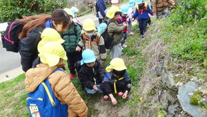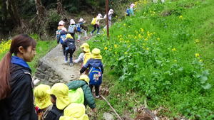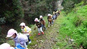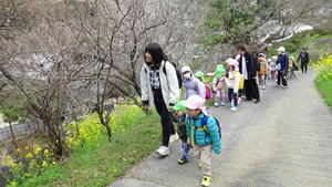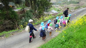 | 【3月6日 お別れ遠足】 今日はお別れ遠足。 雨の様子がよく分からず、 予報によってもまた違う今日のお天気。 でも『朝のうちは大丈夫そう』と言うことで 梶谷岡の集会所に向けて歩いて行った子ども達。 すみれさんと歩く嬉しさも相まって、 和気あいあいと日土の里道をおさんぽして歩いた この子達でありました。 歩く道すがら、『春』を見つけ、その喜びを分かち合った子ども達。 帰りはバスでのお迎えも約束してあったので、 後のことを心配することなく思いっ切り 元気を出し切って歩くことが出来ました。 帰りは3往復するつもりでバスを出した僕だったのですが、 途中歩いて帰って来るすみれさんに遭遇。 お天気がもちそうと言うことで、 僕のことも想って歩いて来てくれたみたい。 また『最後の遠足だからみんなと歩きたい』 と言う想いもあったようで、 そんなところにもこの子達の心と体の成長を感じたものでありました。 一方、2便のバスで帰って来たももさんは 「らくちん!らくちん!」なんて御機嫌笑顔。 今はこれはこれでよし。 年中としては当たり前の姿なのですが、 「来年度の一年を過ごす中で、 今年のすみれさんみたいになってくれたらいいな」 と思ったものでありました。 そんなこんなで色々なこと・お楽しみがあったお別れ遠足。 写真と共にまた振り返って参りましょう。 |