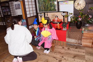 | 【今週のスナップ 3月4日】 『お楽しみ会』が終わった後、 母屋に移動して『おひなさま撮影会』をした子ども達。 女の子と男の子が 女雛・男雛になりまして、 段飾りのおひなさまの前で 「はい、チーズ!」。 女子の数が少ないと言う園勢もありまして、 何度も再登場となった『モテモテちゃん』もありました。 嬉しそうな顔でカメラの前でおすましをしていたこの子達。 『今日は嬉しいひなまつり』を 思いっ切り味わった一日となりました。 みんな、かわいかったよ! |