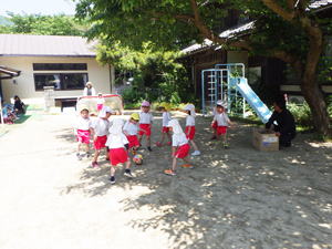 ![]() よーいスタート!で飛び出して行った子ども達。 よくよく知った幼稚園を お父さん・お母さんに案内してくれました。 |
