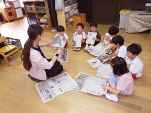 | 5月7日 すみれ組 今日はすみれさんのお部屋の様子。 『はっけん』と言う月刊誌をテキストに学びと発見の楽しんでおりました。 色々な事をテキストから学んでみようと言うこの時間。 美味しそうな巻き寿司の写真の頁を見つめながら 「この中でお花は何個?」 なんてやり取りを通して 『分類』や『数』と言う概念を学んでゆきます。 一つの言葉によって定義される『分類』、 まったく同じものではないけれど 『同じ種類』とか『同じようなもの』でまとめると 傾向や分布など色んなことが分かって来るのです。 『これとこれは同じ』とか『仲間』って考えることが出来るようになると、 ものの考え方や受け止め方がとても楽に。 それをみんなで一緒に遊びながら楽しみながら やってゆきましょうと言うのが趣旨なので、 『出来た』『出来ない』や『分かった』『分からない』で 一喜一憂するものではありません。 新たに『知ること』『分かること』に喜びを感じられるようになって行ってくれたなら それが何より嬉しい事。 自分から受け入れよう・見つけ出そうとすることが、 人の学びの中でもっとも大切な要素なのだから。 次の頁にはツバメのトピックスがあって、 それに興味津々の子ども達&美香先生。 ツバメの子育てが紹介されていて、 「一日に親鳥が500回のエサを運ぶんだって」 と言うお話にみんなでビックリしておりました。 「幼稚園にも今はもう使っていないツバメの巣があるんだよ。 何処にあるか探してみて」 と言う僕の問いかけにやる気を見せていた子ども達でしたが、 でもまだ誰も答えを言いに来てくれていません。 「誰が気付いてくれるかな」と楽しみにしているのですが、 これも『あれとこれは同じ』の認識力の分化が必要。 写真と全く同じではないけれど、 『こんな感じ』『これに似ている』と言う気付きが得られたなら きっと発見してくれるはず。 さあさあ、誰が見つけてくれるでありましょう。 |