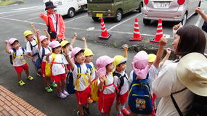 | 5月23日 すみれ・もも組 先日の花の日礼拝を受けまして、 今日すみれ・ももの子ども達が『日土のめぐみ』まで 慰問に行って参りました。 先週の遠足でも長距離を歩いたこの子達。 すみれさん達に言わせれば 「去年も行ったし」と余裕しゃくしゃく。 なるほどこの子達の健脚ぶりには安心感があり、 今回もしゃんしゃん歩いて行ってくれました。 『日土のめぐみ』では毎回の如く 利用者さんとスタッフさんが待ちに待ってのお出迎えをしてくださって、 子ども達もそんな大歓迎ぶりに嬉しそう。 そうでありながらちょっと緊張顔もしていたこの子達を見ていると、 「去年のすみれの人懐っこさは天性のものだったんだなぁ」 と改めて思ったものでした。 でもやるとなったらしっかりやってくれるのも 今年のすみれの『らしさ&すごいところ』。 ちゃんとしっかりご挨拶をいたしまして、 それから今回の花の日礼拝の花束と 花の日のカードを受け取ってもらいました。 それからひととき、交流の時を持たせてもらった子ども達。 手遊びから始まって、 チーフを手に手に『お花が笑った』や『にじ』を 歌い披露して参りました。 利用者さんの分までチーフを準備して持って来てくれた美香先生。 おかげでおばあちゃん達も綺麗なチーフをたなびかせ 嬉しそうにふりふりしてくれました。 またそれからお手玉を使っての手遊びを 一緒にやったのでありますが、 「お手玉、見せてくださいますか」 との美香先生の投げ掛けに、 お得意のお手玉を見せてくれたおばあちゃん。 子ども達もスタッフの方も「すごーい!」 とその技に感動してしまいました。 僕もその一人であったのでありますが、 それと同時に美香先生のお年寄りへの投げかけが あまりにも上手だったので、 また先生のすごさを改めて見せてもらったような気がしたものでした。 その後を引きついて 実祐先生が『カマキリマッサージ』の触れ合い遊びをプレゼンテーション。 子ども達とおばあちゃん達が前に後ろになりまして 触れ合い遊びを楽しみながら、 心地良いトントンマッサージで その距離を縮めてゆきました。 だいぶこの場に慣れて来た子ども達。 おばあちゃん達に積極的に 関わろうとがんばってくれておりました。 実祐先生も大奮闘。 子ども達とお年寄りの触れ合い・関わり合いを 一生懸命橋渡ししてくれたものでありました。 そんなこんなであまりに楽しく盛り上がってしまったので、 いつもは30分位のところを交流が 10分も15分も延びるほど、 子ども達も楽しく過ごさせてもらいました。 そして最後はお互いに名残り惜しそうにいたしながら、 「また秋に来ます。それまでどうぞお元気で」 とお別れし、 日土のめぐみを後にした子ども達でありました。 帰り道はみんなの足取りの重いこと。 やり尽くしたのもあり・緊張していたのもあり、 「それだけがんばったんだね」 と思ったもの。 行きと同様に旧青石中学校でひと休みさせてもらいまして、 そこからまた幼稚園に向けてがんばり歩いたのでありました。 疲れてはいながらも想いは晴れ晴れ。 喜んでもらえた嬉しさも相まって、 お口は上々だった子ども達。 その日は幼稚園の駐車場で サボテンの花が綺麗に咲いていて、 「元気が残っていたら行きましょう」 と言っていたけど もう今日はしんどいかな…とも思った僕。 それでも先生達に「いこう!」と言ってもらいまして、 ちょっと足を延ばして『サボテンお花見』に行きました。 駐車場の入り口からサボテンの花を見つけると 急に走り出した子ども達。 「そんなに元気残っていたの?」 とその姿に僕らが驚くほどでした。 サボテンの花に喜びながら あっちこっちに走り回っていた子ども達でありました。 じきにその下を流れる水路に興味が移りまして 葉っぱを流して大喜び。 その間、僕はと言えば サボテンの花をゆっくり写真に撮らせてもらいまして、 うつろいゆく季節をゆっくりと楽しませてもらいました。 そんな楽しいこと・嬉しいこと盛り沢山となった この日の日土めぐりのお楽しみお散歩。 全ては花の日礼拝のお花から始まったこの日のめぐり逢い。 いろんな方と触れ合って・想い合って心満たされた 素敵な一日となりました。 皆みなさんに心より感謝です。 |