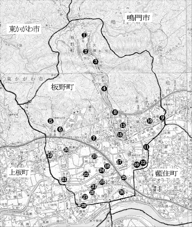| 板野郡板野町の地神さんは寛政元年銘の地神塔2例含む計31例を確認し、その所在地は地名と経緯度で示す。 1955年に板西町、松坂村及び栄村が合併して成立した板野町は吉野川の北に位置し、鳴門市、藍住町、上板町及び香川県の東かがわ市に隣接している。東かがわ市との境には大阪峠があり、海岸沿いの道路が整備されるまでは徳島県と香川県を結ぶ主要な道であった讃岐街道が通っている。 板野町の地神塔の詳細は[2013 板野郡板野町の地神塔 徳島地域文化研究11号]を参照下さい。 |